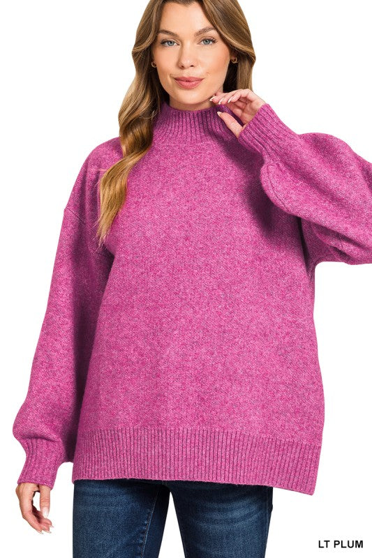 MOCK NECK SIDE SLIT PULLOVER SWEATER