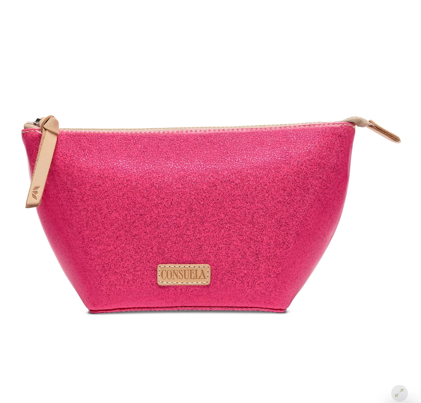 - Diego natural leather zipper pull and logo accent