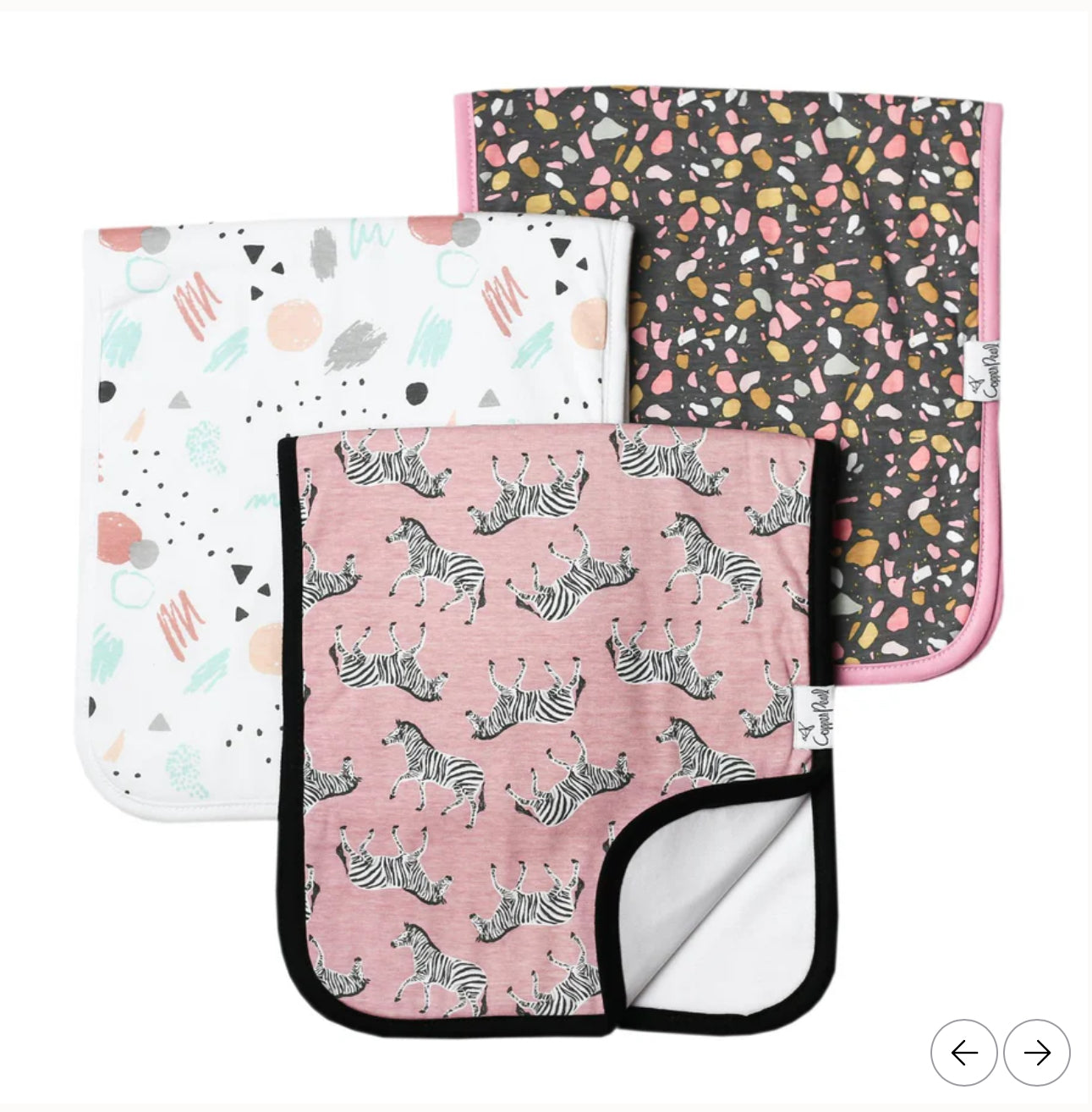 A middle fleece layer provides superior absorbency, stopping drool and spit up in their tracks. The dreaded leakage onto parent clothing is a problem of the past!