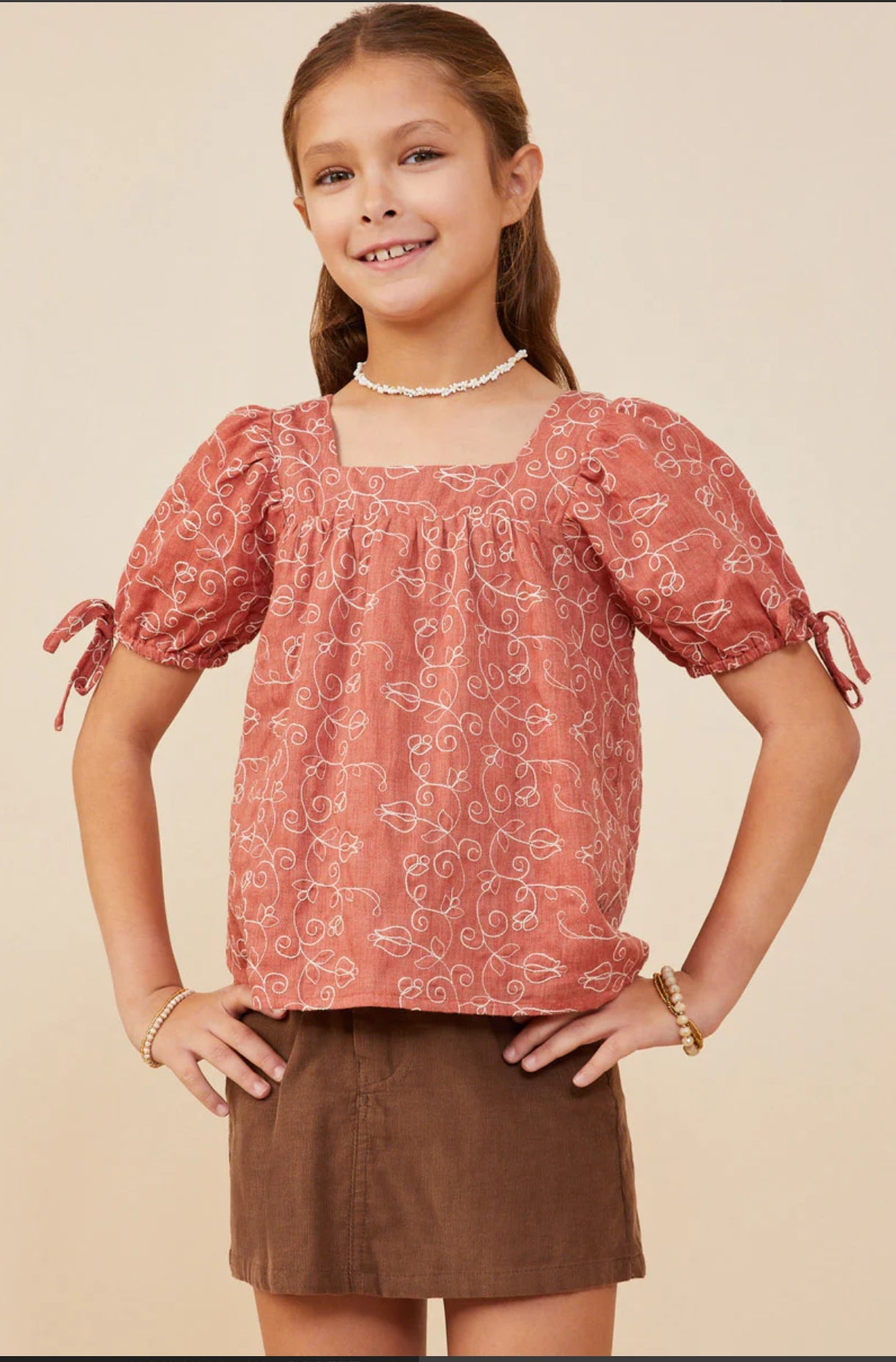 Our Botanical Embroidered Tie Sleeve Top Features: