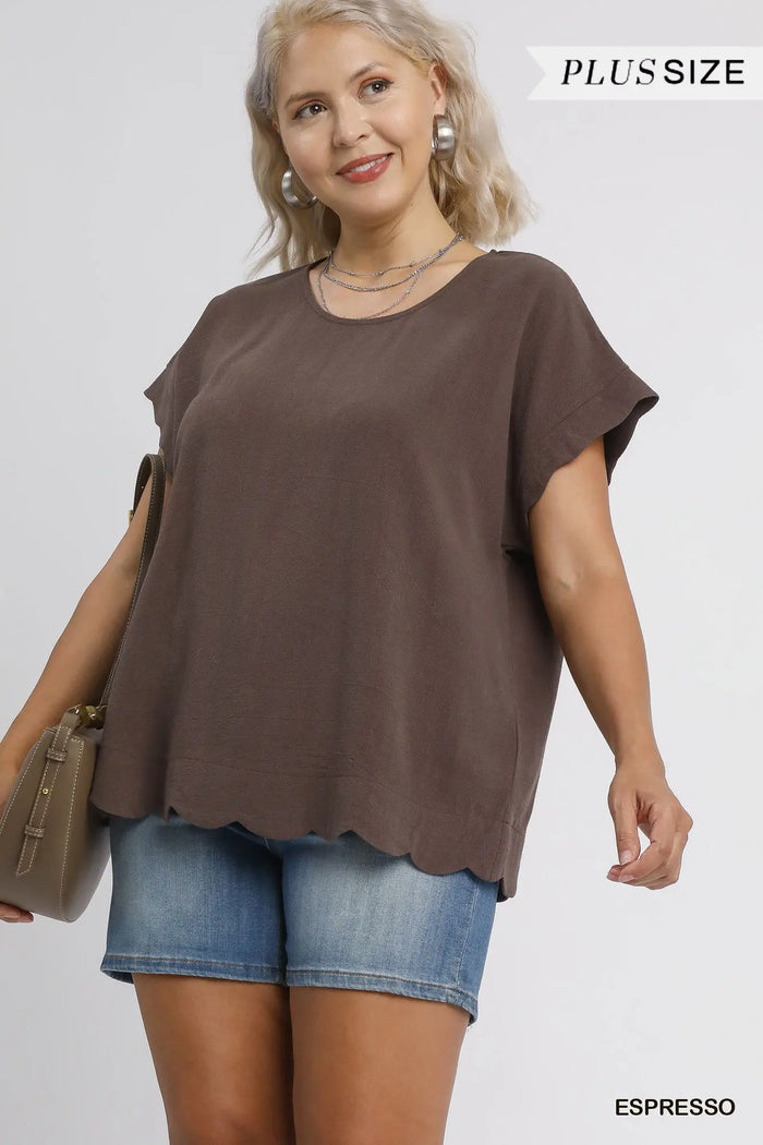 Scallop Hem Linen Blend Top
