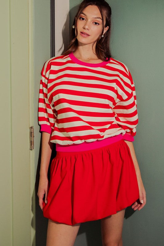 Round Neck Bubble Sleeve Sweatshirt Model Height: 5'8" Wearing Size Small