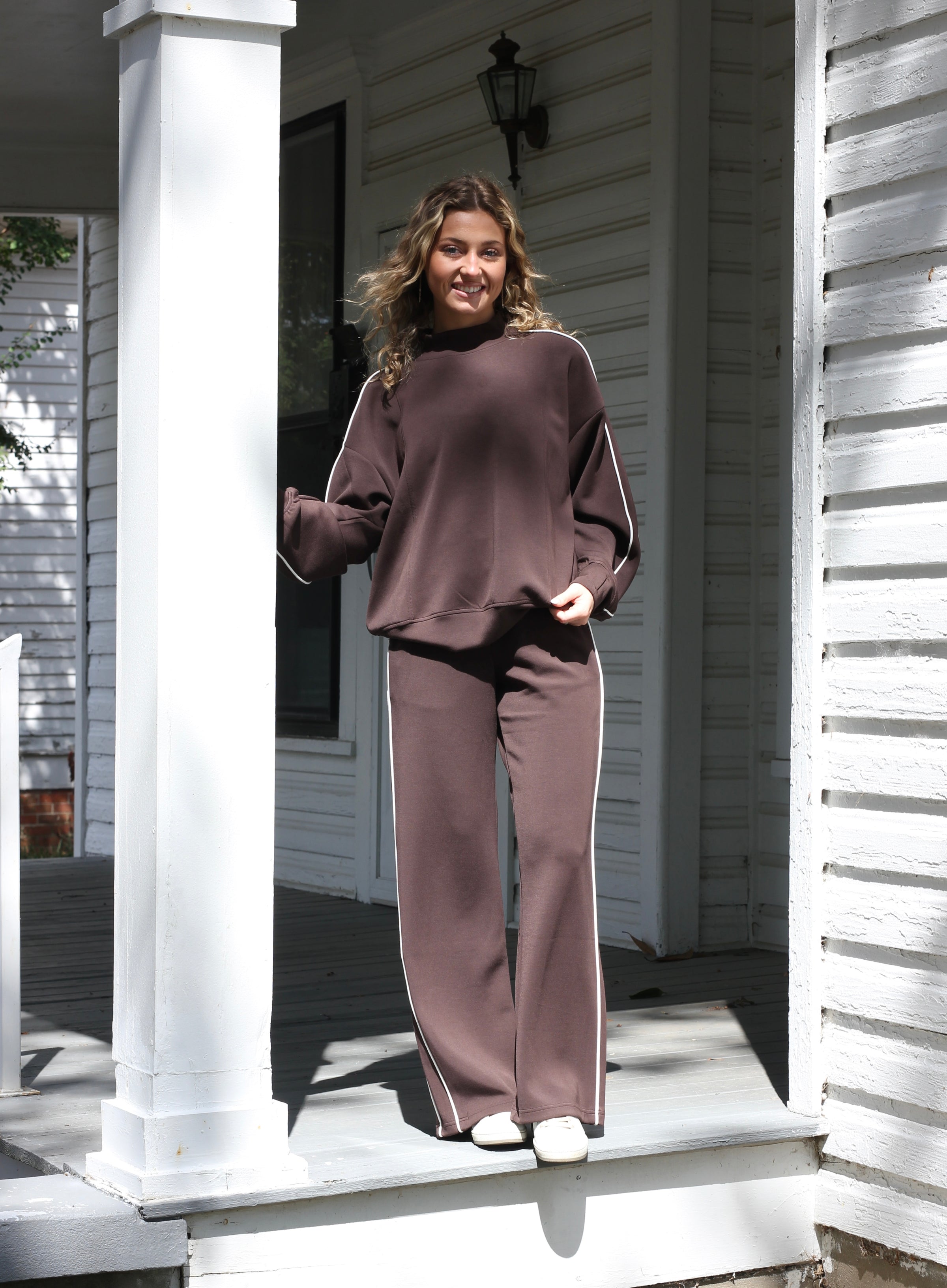 Modal Scuba Two Stripe Piping Straight Pants Set