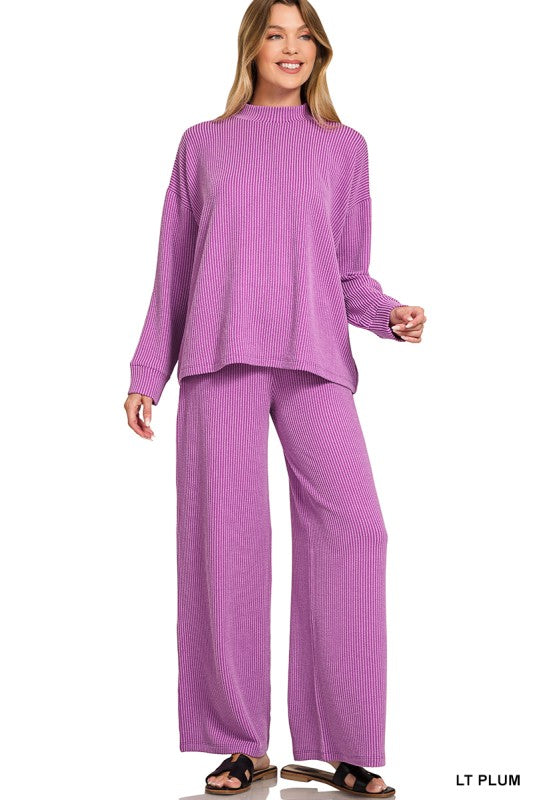 Raised Rib Mock Neck Long Sleeve Tee & Pants Set