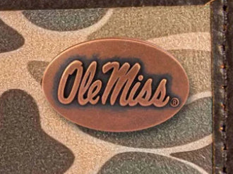 Show your passion with an original Zep-Pro Old School Camo leather money clip featuring a Turkey design. The wild bird imagery on these wallets taps into our intrinsic connection to nature and wildlife. It is a stylish and unique way to show enthusiasm while keeping important cards and cash organized. This Zep-Pro wallet is constructed of full grain leather with a Old School Camo print and features a Turkey meatal logo, proudly displayed on the front. The metal concho emblem has an antique copper finish which perfectly accents this unique wallet.